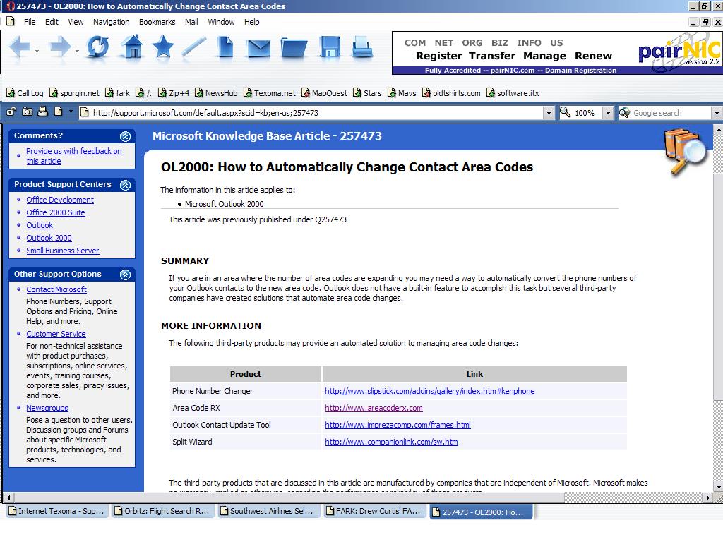 Infatti come dicevo nel messaggio di poco fa, alle due e venti di stamattina (14/1/03, ora italiana) il sito Fark.com ha segnalato che questa pagina autentica del sito Microsoft, dedicata all'assistenza tecnica di Outlook,