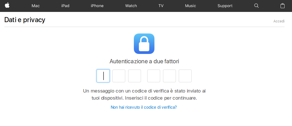 Ho digitato il codice e ho avuto accesso ai miei dati. In altre parole, è piuttosto difficile che un intruso riesca a scaricarsi una copia dei vostri dati Apple se non ha anche uno dei vostri dispositivi e senza che voi riceviate un avviso molto chiaro.